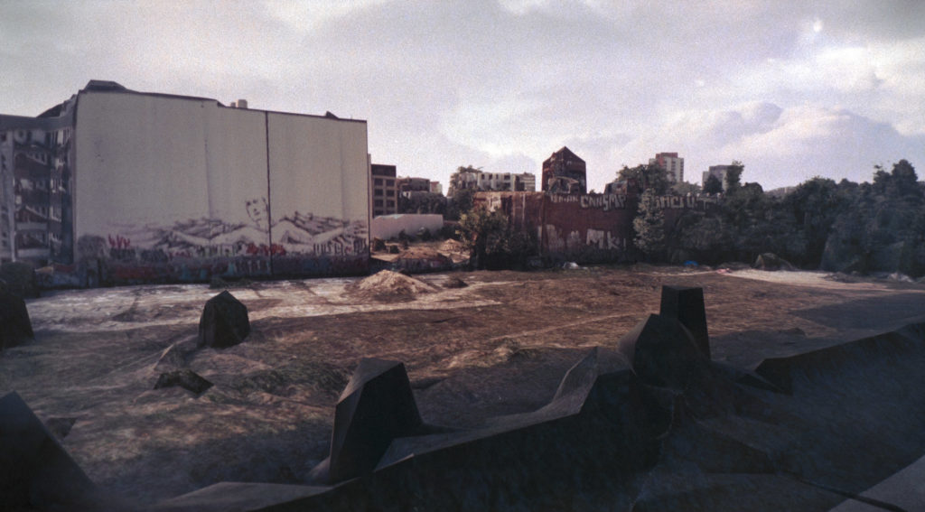 „virtual wastelands” (working title) is about changes in urban space, it uses very current gaming technology in order to highlight those. For a few years I have been documenting the last remaining wastelands of Berlin that have strongly influenced my image of Berlin as a child and teenager and are, in my opinion, important places free of any concepts of use and architectural planning. Due to their radical otherness, the wasteland has philosophical significance for urban living and thinking. Today, these empty spaces have almost completely disappeared from the inner city and the city is becoming more hermetic by the day. In the absence of real wastelands, I have meanwhile begun to look for wastelands in virtual worlds as well. Microsoft’s Flight Simulator 2020, which I play on the latest XBOX console, uses photogrammetry to create amazingly realistic cities. The inner city of Berlin is also included and since the underlying satellite images are from around 2008, this old version of Berlin still contains wastelands that I could no longer film in real life. With a virtual camera I now fly through this Berlin of 2008 from the comfort of my home and photograph the virtual wastelands there. In a further step I use an analog camera and photograph my motives off a high-resolution 4K screen. Through this transfer to analog, the images seem even more real and only on closer inspection does it become clear that this world is not quite as real as it seems. This loss of the real also affects the wasteland in parallel, whose mere virtual existence ultimately laments its real loss even more. The progressive commercialization of cities and virtual spaces has partly destroyed these free spaces forever. (The project can also be shown in combination with my project “nome/home” which is about urban change and uses videogame technology)